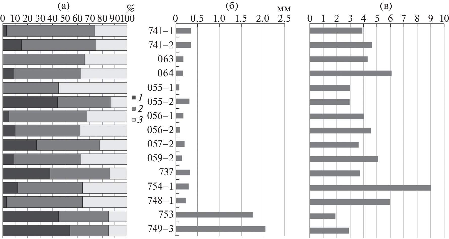 Впервые проведен комплексный анализ вещественного состава аллювия реки с активными газогидротермальными проявлениями. Его общими чертами являются: плохая окатанность валунов и гальки (1–2 класс), слабая сортировка мелкообломочной составляющей, обилие обломков пород и сростков минералов даже во фракции тонкого песка. Все это указывает на слабую дезинтеграцию осадка и значительную долю в нем склонового материала, в том числе переотложенного селями. Большое содержание смектит-цеолитовых и иных агрегатов, состоящих из вторичных минералов (до 70% легкой фракции размерности 0.1–0.25 мм), и измененных обломков пород (до 70–80% в галечной фракции) свидетельствует о значительном влиянии газогидротермальной деятельности на переработку размываемых рекой пород, а также о вторичном выветривании аллювия в пределах термальных полей. Аккумуляция материала в русле носит фрагментарный характер и доминирует на участках: (1) активного поступления материала со склонов (временные плотины), (2) выполаживания продольного профиля в местах подпрудных водоемов и (3) выноса селевого материала. Возникновение двух подпрудных водоемов за последние 15 лет, а также находки прослоев тонкого песчаного материала в осадках низких террасовых уровней свидетельствуют о том, что для долины р. Гейзерной типично периодическое формирование подобных кратко живущих бассейнов. Условия накопления мелкопесчаных отложений на участках однорукавного русла и в пределах подпрудных водоемов различаются, что сказывается на соотношении ведущих минералов тяжелой фракции. Обилие хорошо окатанного гравия и крупного песка, выветрелый облик окатанных зерен в аллювии свидетельствуют о том, что наряду с переработкой больших объемов поступающего склонового и селевого материала, р. Гейзерная продолжает врезаться и размывает древние флювиальные осадки.