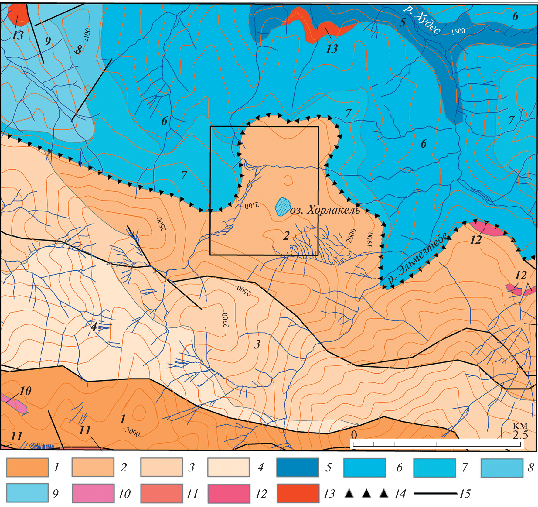 The change in sediment yield is an important indicator of the natural environment dynamics, depending on the combination of landscape, tectonic and climatic conditions. Assessment of sediment yield often based on the results of studying the bottom sediments of mountain lakes with relatively compact catchments. However, for correct reconstructions, in addition to analyzing lake sediments, it is necessary to study the causes and mechanizm of sediment redistribution in their catchments, to identify sediment delivery pathways to the reservoir and their possible changes over different time windows. The drainless Lake Khorlakel, located at the altitude of 2045.0 m above sea level on the northern macroslope of the Greater Caucasus. It is a suitable testing ground for complex research: on the one hand, the relict reservoir is an ideal sedimentation trap, and on the other, it is located with in an area of intensive exogenous processes and tectonic activity. The two boreholes were drilled in 2017 in the deepest (≈8 m) part of the lake and 17 samples collected taken from the cores for radiocarbon dating, which made it possible to build an age model for the range from 8000 to 500 yr. BP. Complex geological and geomorphological studies were carried out in 2021 to interpret the obtained data. It was found that sedimentation in the lake is associated with runoff and sediment redistribution in the Elbashi creek catchment. A number of episodes of proluvial activation with the formation of an outflow cone, followed by lake accumulation, have been traced for the last 8 kyr. The connection between lake and catchment ceased only in the last 1 kyr. BP. Two main stages of lake sedimentation with a boundary of 3 kyr. BP and 10 episodes, that are characterized by different proportions of mineral and organic components in bottom sediments were established. Some of the lithostratigraphic boundaries correlate with strong earthquakes that occurred in the Elbrus region, and some – with climatic events.