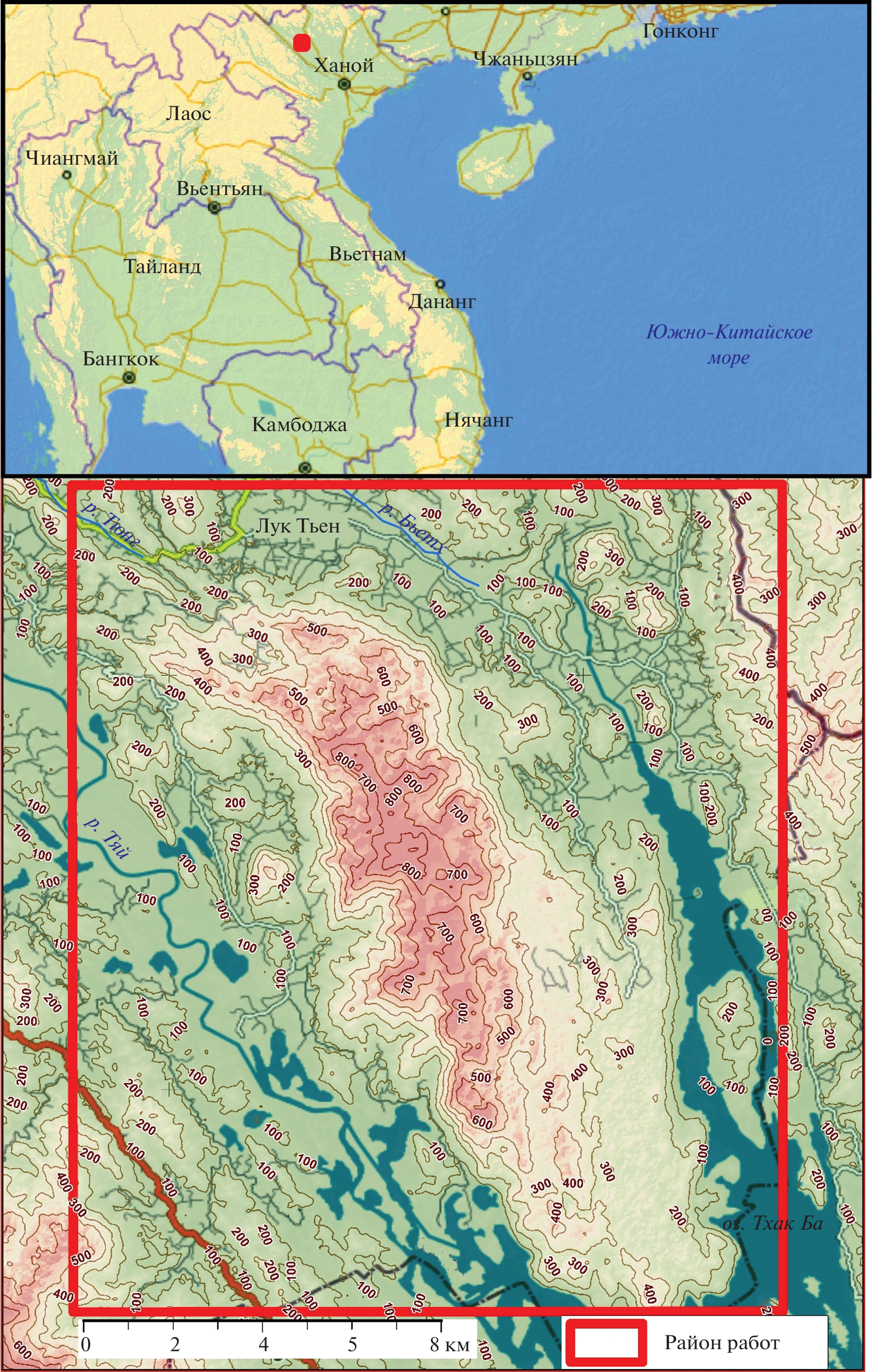 The study area is located in the north of Vietnam in the province of Yen Bai and it is a large (14.5 × 6.5 × × 0.8 km) structural and denudational butte on the periphery of high-dissected low mountains Con Voi, and they are also slopes and bottoms of the neighbor rivers valleys. There are a lot of gemstone outcrops on the territory related with the vein formations in the strata of marbles. The area is relatively difficult to access for geological fieldworks. Therefore, in order to organize and conduct field geological prospecting work, the task was to obtain preliminary data on the possible localization of useful mineralization areas based on the analysis of available geological and geomorphological information. For the task, the spectral regularities of the land surface dissection spatially associated with veined geological formations in the near-surface part of the marble strata were studied, we used the discrete Fourier transform for this. The binary classification (for classes of potentially useful and useless areas) of the elevation amplitudes according with different spatial frequency of topographic dissection was provided with the simple neural network – two-layer perceptron. This algorithm is implemented on the basis of the scientific analysis libraries of the Python. The application of this technique made it possible to carry out a prediction for ruby-spinel mineralization in bedrock over a study area of more than 200 km2. Fieldworks in 2019 verified the predicted data by the ways of mineralogical and geochemical testing of the accessible part of the predicted points. An average estimate of the predictive strength of the method used was obtained as 35% – every third site predicted by the neural network actually contains the primary sources of rubies and spinels in the territory under consideration.