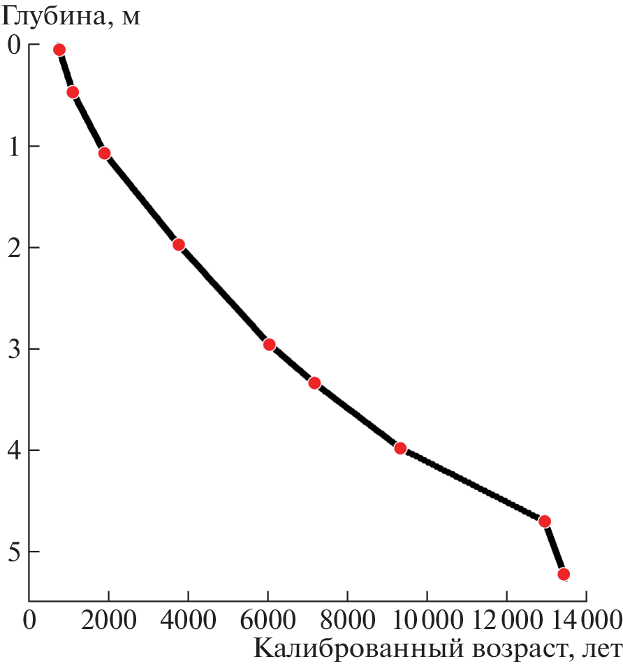 A spore-pollen analysis of a 526 cm sediment core retrieved from Lake Bolshoe Miassovo, Southern Urals, was carried out. The obtained data made it possible to reconstruct the vegetation cover in the lake’s catchment area and the climatic situation of the region for 13 400 cal yr BP, which significantly expands and complements the paleogeographic chronicle of the Southern Urals. It was found that in the range of 13 400–12 700 cal yr BP in the conditions of a relatively warm and dry climate of Allerød, periglacial forest-steppe formations were widespread in the studied region. Steppe herb communities and birch-pine sparse woodlands with spruce grew on open landscapes. The pine degradation and replacement of spruce with more cold-resistant larch was most likely caused by a cooling in the period of 12 700–11 700 cal yr BP, which corresponds to the Younger Dryas. The periglacial forest-steppe formations are replaced by birch forests since 11 700 cal yr BP. The significant changes in the vegetation cover of the lake’s catchment area indicate warming and humidification of the climate at the beginning of the Holocene. The dominance of birch forests in the interval of 11 300–10 300 cal yr BP, probably, corresponds to the second half of the Pre-Boreal period. The distribution of pine and spruce in the range of 10 300–8300 cal yr BP indicates a warming of climatic conditions in the Boreal period. Since 8400 cal yr BP the proportion of broad-leaved species in the tree stand increases. The broad-leaved species cover reached its peak between 6000–4500 cal yr BP at the end of the Atlantic - the beginning of the Sub-Boreal period (Holocene climatic optimum). Some cooling of the climate was observed in the range of 4500–2000 cal yr BP, which presumably corresponds to the Sub-Boreal and the beginning of the Sub-Atlantic period. The birch forest with spruce and broad-leaved species grew in the lake’s catchment area. Some aridization and warming of the climate in the Sub-Atlantic period in the range of 1800–1000 cal. yr BP led to an increase in the role of pine and a reduction of spruce in the area around the lake. Since 1800 cal yr BP the vegetation of the territory adjacent to Lake Bolshoe Miassovo was similar to the modern one: pine-birch forests with an admixture of dark coniferous and broad-leaved species prevailed on the territory.