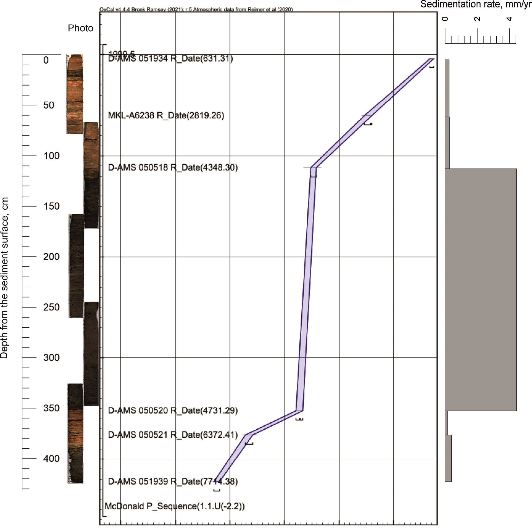 D-AMS 051934 | KDG-13 | 3.5–4.5 | Sediment (bulk) | 631±31 | 553–659 | 600 |