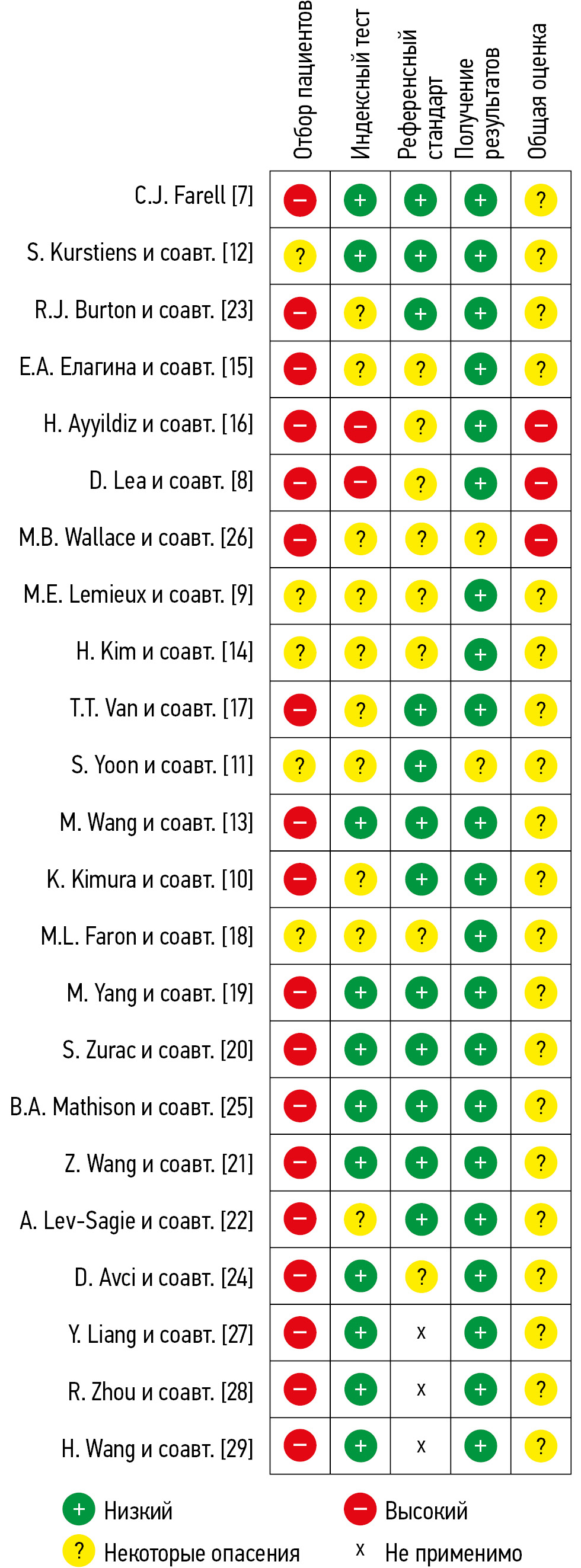 Результаты. Всего в обзор включили 23 публикации, в которых представлены исследования на преаналитическом, аналитическом и постааналитическом этапах лабораторного анализа — 1, 19 и 3 соответственно. Большинство исследований проведено в области цитологии и микробиологии — 48 и 35% соответственно. Искусственный интеллект демонстрирует высокую эффективность в отношении решения задач на всех этапах лабораторного процесса. Кроме того, его диагностическая точность сопоставима с уровнем медицинских работников, а скорость принятия решений значительно выше. Тем не менее во всех работах наблюдали риск систематической ошибки, что связано с несбалансированностью выборок, отсутствием внешней валидации данных, а также точного их описания и методов анализа.