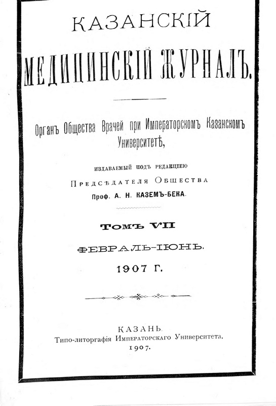 On January 18, 1880, H. M. Lyubimov, then still a prosector at the Department of Pathological Anatomy of the Kazan University, was elected a valid member of the Society of Physicians, which was attached to the Imperial Kazan University. Since then, and until the very last days of his life, for 26 years continuously, Nikolai Matvevich took a lively part in the affairs and life of the Society, and no one else from our members was so active and did not bring so much benefit to our Society as Professor Lyubimov excluding his teacher, the famous Chairman of our Society of the old times, prof. A. V. Petrov.