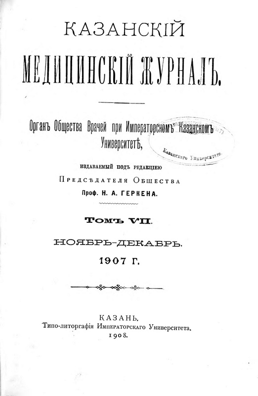 Въ періодъ моего завѣдыванія дифтерійнымъ отдѣленіемъ Казанской губернской земской больницы, съ 10 марта 1905 г. по 1 мая 1907 г., я наблюдалъ 20 случаевъ крупа гортани, гдѣ одновременно съ сывороткой примѣнялась интубація. Эти наблюденія и послужили матеріаломъ настоящаго сообщенія.