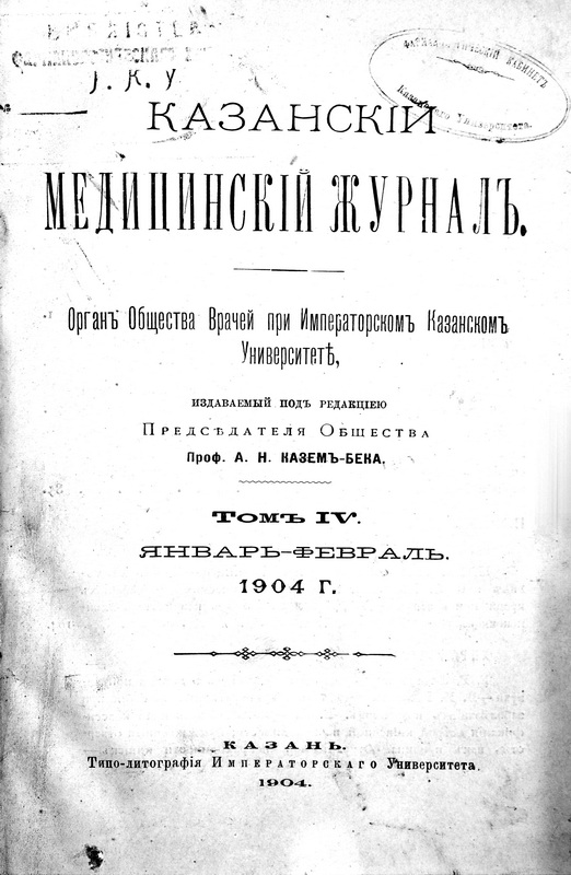 А. A. Abrazhanov. Gastroenterostomy in benign gastric distresses. Surgery, vol. XIV, Nо. 84