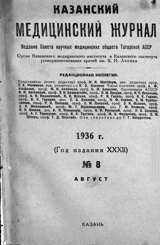 Scientific conference of Kazan Tuberculosis Institute on Mazur antivirus (May 29-31, 1936)
