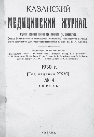 Заседания медицинских обществ.Общество врачей при Казанском университете. Общие заседания.Заседание 4 марта 1930 г.