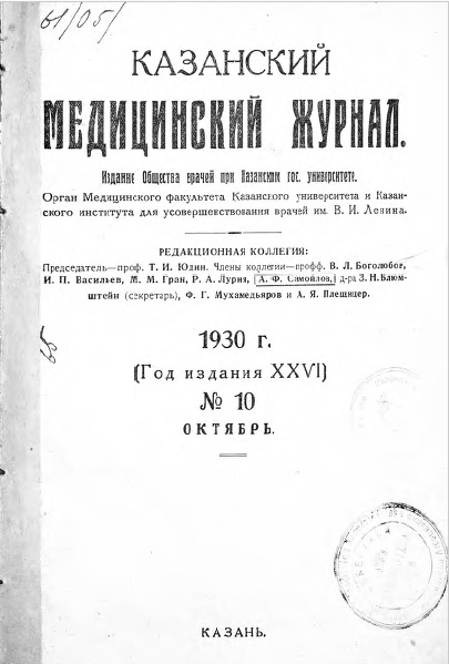 Объединенное заседание с научным собранием врачей Госинститута для усовершенствования врачей им. Ленина в Казани 21 января 1930 г.