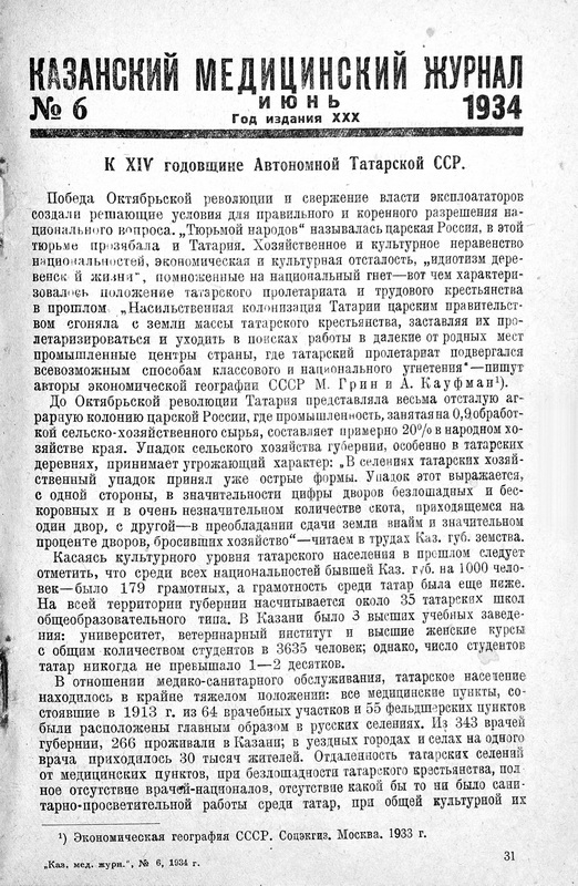 Победа Октябрьской революции и свержение власти эксплоататоров создали решающие условия для правильного и коренного разрешения национального вопроса. „Тюрьмой народов“ называлась царская Россия, в этой тюрьме прозябала и Татария. Хозяйственное и культурное неравенство национальностей, экономическая и культурная отсталость, „идиотизм деревенской жизни“, помноженные на национальный гнет—вот чем характеризовалась положение татарского пролетариата и трудового крестьянства в прошлом.
