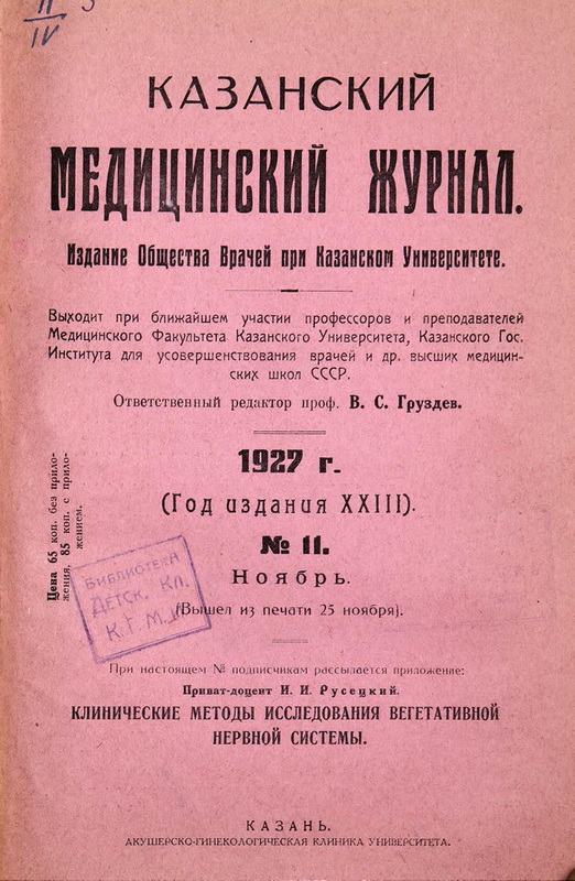 The chairman of the Academic Meeting at Tatnarkomzdrav (see No. 206 "Chronicle") was elected prof. VS Gruzdev, his deputy — prof. VM Aristovsky, secretary - Dr. AG Teregulov.
