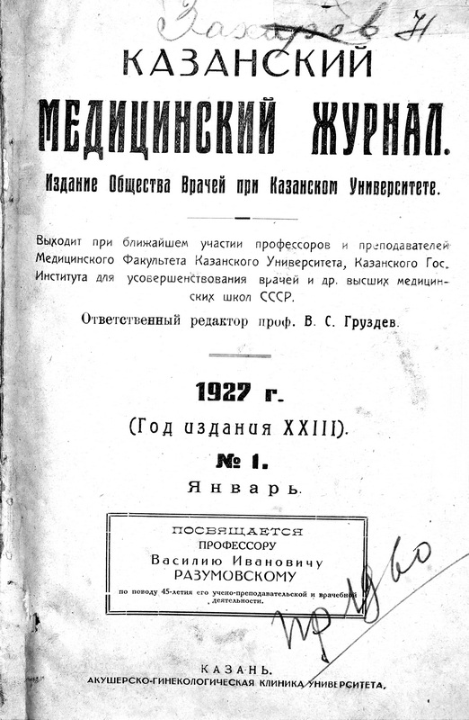 Society of Physicians at Kazan University. Vol. 23, No. 1 (1927)