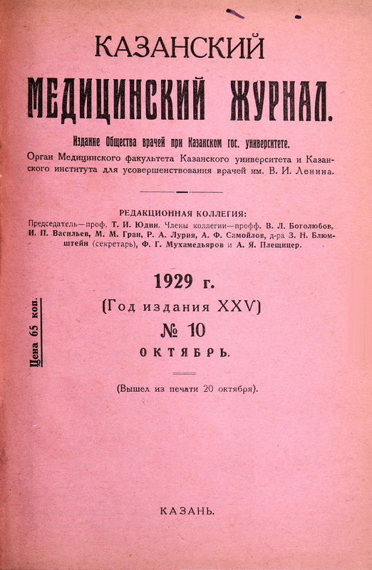 Директор Поликлиники проф. Д.М. Российский. Труды Поликлиники внутренних болезней I Московского государственного университета М., 1929