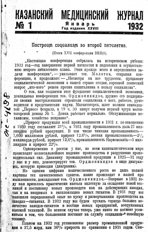 В № 11—12 Казанского медицинского журнала за 1931 г., в редакционной статье, открывающей номер, довольно значительное место уделено оценке двух моих, появившихся в этом же журнале, работ (1,2). Целиком и полностью солидаризируясь с развитыми в начале статьи установками Редакции, берущей, как указывает самое заглавие статьи, в основу всей своей работы практическое осуществление указаний тов. Сталина о борьбе с чуждыми теориями и о бдительности на идеологическом фронте, я не могу согласиться с данной в статье оценкой моих работ, как якобы проникнутых теориями, чуждыми диалектическому материализму, и обнаруживающих механистические установки.