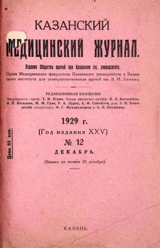 Общество врачей при Казанском университете. Хирургическая секция. Заседание 1 ноября 1929 г.