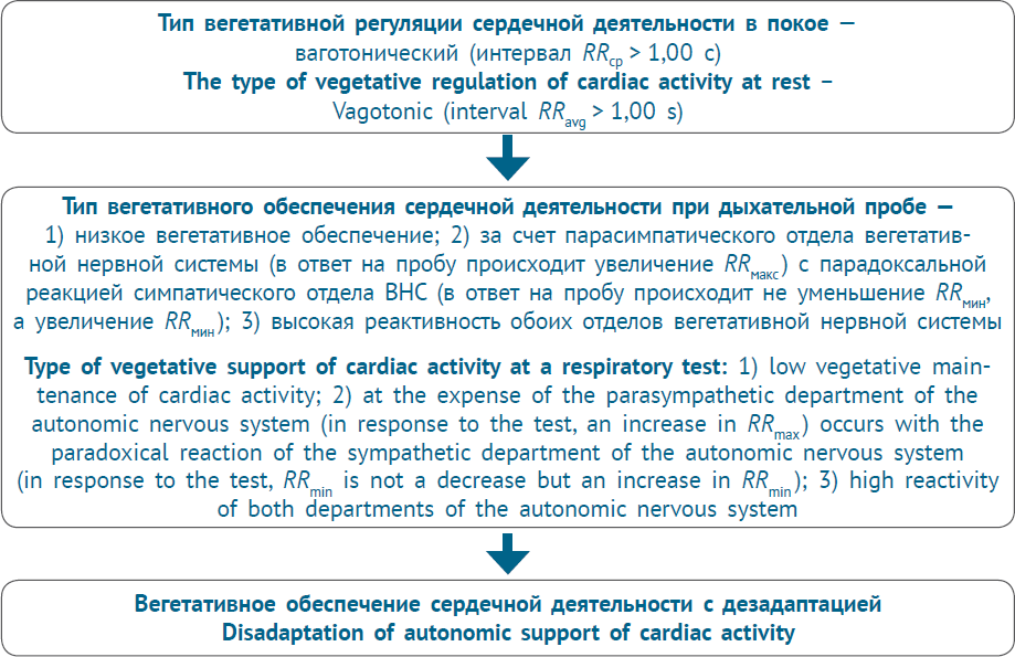 Fig. 7. Algorithm for the diagnosis of normal vegetative maintenance of cardiac activity in patients with bradycardia