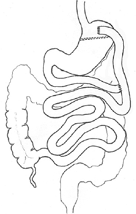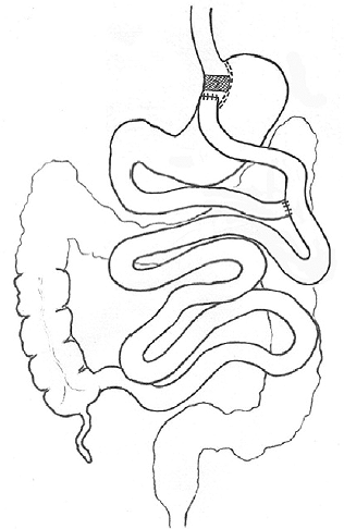 Суть предложенной операции заключалась в продольном пересечении желудка на уровне субкардиальной части. Между проксимальной малой частью (20 % объема) желудка (получившей в литературе название «малого желудка», «желудочного мешочка», pouch) и тощей кишкой на расстоянии 60 см от связки Трейца накладывалось соустье [2, 63].