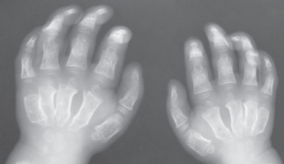 Рис. 5. Рентгенограмма кистей пациента с мукополисахаридозом VI типа