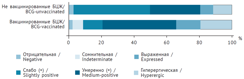 Fig. 3. Diaskintest′s results for BCG-vaccinated and unvaccinated children