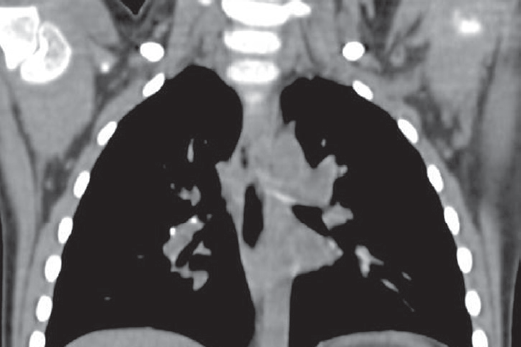 Fig. 5. Chest computed tomography scan of the 3-years old girl (intrathoracic lymph node tuberculosis)