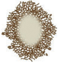 Периферические глобулы с ретикулярной сетью / однородной зоной в центре | Центральный ретикулярный или однородный компонент, однородные глобулы по периферии |