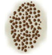 Глобулы | Глобулы одинаковой формы, размера и цвета симметрично распределены по всему поражению |