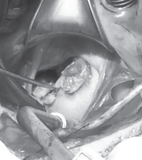 Fig. 7. Intraoperative photo. Abscess on the mural leaflet of the mitral valve