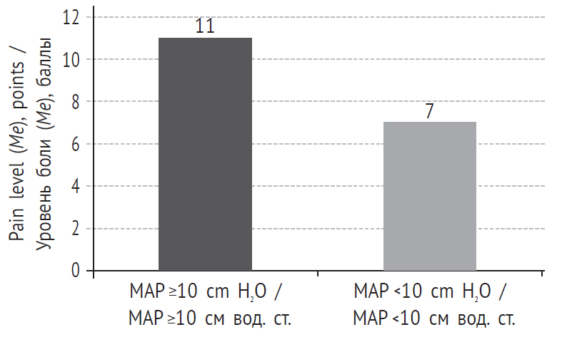 Fig. 3. The level of pain in preterm infants with mechanical ventilation (group I) depending on the МАР