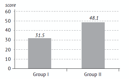 The results of multivariable estimation of anxiety levels revealed a predominantly higher level of this index in the adolescents of group I (Table 1). The most significant levels of anxiety (including values above the normative values) were observed in the “anxiety in relations with peers”, “anxiety associated with the assessment of others”, “anxiety in situations of self-expression”, and “increased autonomic responsiveness”scales, which may indicate a higher level of anxiety and emotional tension in group I adolescents before surgical treatment than in group II adolescents.